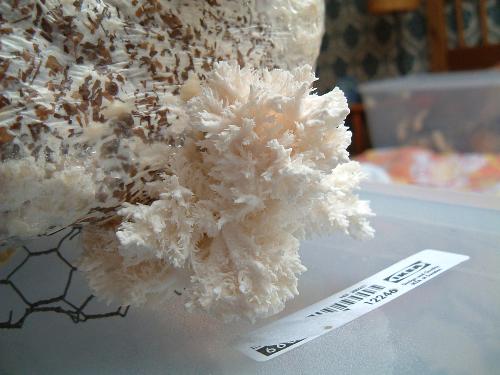 Auf den beiden oberen Bildern die andere Seite der Kultur mit etwas anders aussehenden Fruchtkörpern. Sehen mehr nach Korallen aus. Auch hier der 6. und 8. Februar.