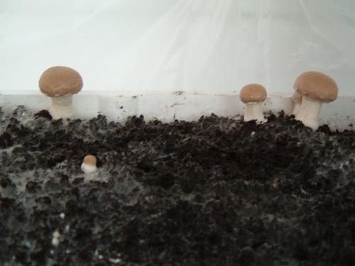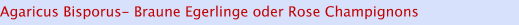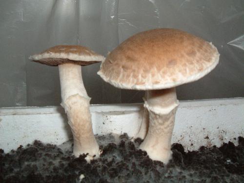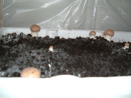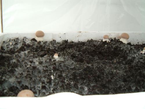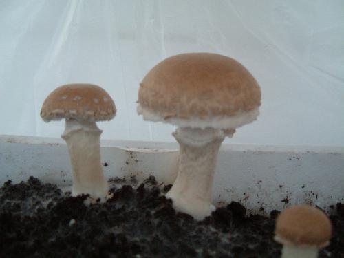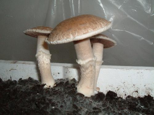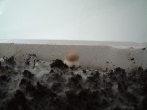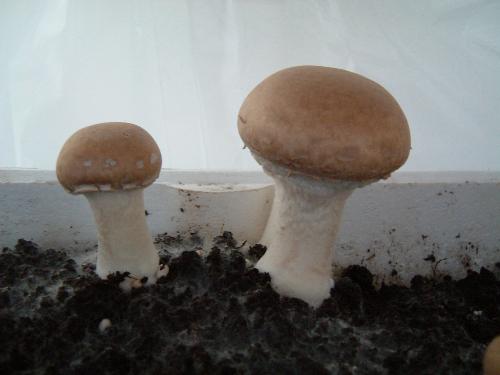 Hier gibts Kulturbilder des braunen Champignons (Egerling), aus eigener Zucht. Auf pasteurisiertem Stroh- Pferdedung (5:1) Substrat gezogen. Mit Torf-Kalk abgedeckt. Durchwachsen des Substrats in 2 Wochen, dann eine Woche für das Durchwachsen der Deckerde. Fotos der Roggenbrut- hier.