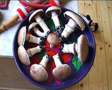 Hier eine Ernte selbstgezogener brauner Egerlinge (auch Rose' Champignons)... Schon die manchmal im Baumarkt erhältlichen Kulturen können auch die ersten Erfolge bringen! (Ausserdem kann man Abdrücke nehmen- oder ganz frische FKs klonen)